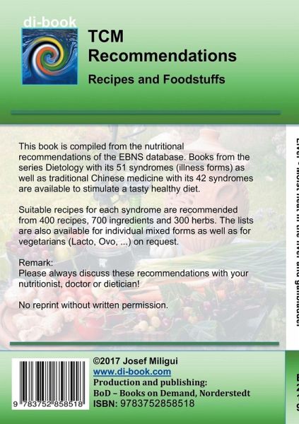 di-book - nutritional counseling after syndromes - Diet recommendations, recipes and food supplements for supporting the Traditional Chinese Medicine therapy. The recipes help you to cook tasty dishes. All recipes with cooking instructions, calorie indications and description of the effect. The foods are shown in categories Recommended, Yes, Less and No, and help orientate if your own recipes should be cooked.