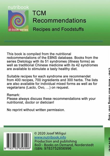 di-book - nutritional counseling after TCM syndromes - Diet recommendations, recipes and food supplements for supporting the therapy. The recipes help you to cook tasty dishes. All recipes with cooking instructions, calorie indications and description of the effect. The foods are shown in categories recommended, yes, little and no and help you to orientate if your own recipes should be cooked.