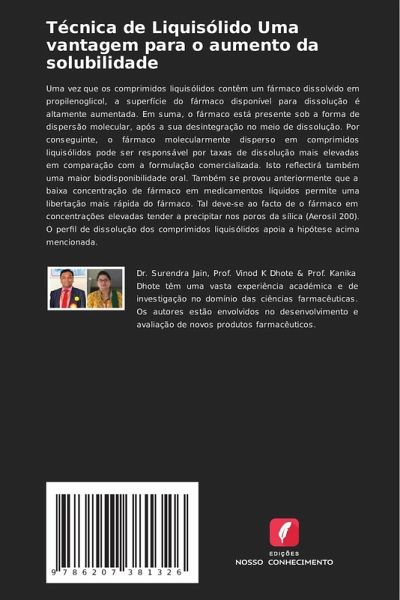 Uma vez que os comprimidos liquisólidos contêm um fármaco dissolvido em propilenoglicol, a superfície do fármaco disponível para dissolução é altamente aumentada. Em suma, o fármaco está presente sob a forma de dispersão molecular, após a sua desintegração no meio de dissolução. Por conseguinte, o fármaco molecularmente disperso em comprimidos liquisólidos pode ser responsável por taxas de dissolução mais elevadas em comparação com a formulação comercializada. Isto reflectirá também uma maior biodisponibilidade oral. Também se provou anteriormente que a baixa concentração de fármaco em medicamentos líquidos permite uma libertação mais rápida do fármaco. Tal deve-se ao facto de o fármaco em concentrações elevadas tender a precipitar nos poros da sílica (Aerosil 200). O perfil de dissolução dos comprimidos liquisólidos apoia a hipótese acima mencionada.