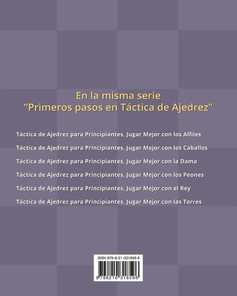Para progresar, una vez asimiladas las normas, es necesario adquirir puntos de referencia sólidos. En particular, debe conocer bien los puntos fuertes y débiles de cada pieza. Para ello, hay que practicar. Hay que practicar con problemas de ajedrez bien elegidos, como los de este libro. Este volumen se centra en la Dama En este libro de gran formato, encontrará: * 500 ejercicios con sus soluciones al final de la página, * ejercicios en los que la Dama juega un papel importante (3/4 de las jugadas en promedio), * ejercicios progresivos para avanzar sobre bases sólidas, perfectos para los principiantes, * ejercicios de Mate en 1 a Mate en 5 y a veces más (y sí, incluso un principiante puede resolver Mat en 5, siempre que estén bien dirigidos). ¿Qué pasa después? Una vez que haya resuelto estos 500 problemas de ajedrez, comprenderá mejor los puntos fuertes y débiles de la Dama. Sabrá cómo explotarlos. A continuación, será el momento de abordar la táctica y sus principales temas, como el tenedor, la clavada, la enfilada, el doble ataque o la desviación. Cada día, unos cuantos problemas de ajedrez ... y, día tras día, semana tras semana, las sutilezas de cada pieza se harán evidentes. Poco a poco, su sentido táctico se agudizará. Así, podrá infligir importantes daños a sus oponentes. Esta serie "Primeros pasos en Táctica de Ajedrez" consta de 6 volúmenes independientes que pueden consultarse en cualquier orden: * Táctica de Ajedrez para Principiantes, Jugar Mejor con los Alfiles, * Táctica de Ajedrez para Principiantes, Jugar Mejor con los Caballos, * Táctica de Ajedrez para Principiantes, Jugar Mejor con la Dama, * Táctica de Ajedrez para Principiantes, Jugar Mejor con los Peones, * Táctica de Ajedrez para Principiantes, Jugar Mejor con el Rey, * Táctica de Ajedrez para Principiantes, Jugar Mejor con las Torres.