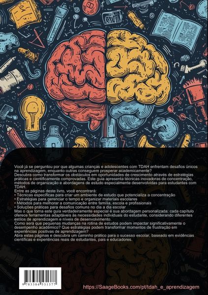 Este livro oferece um guia prático e abrangente para lidar com o TDAH no contexto educacional, apresentando estratégias eficazes para melhorar o aprendizado e o desempenho escolar.Dividido em cinco seções principais, o livro aborda:1. Estratégias de Aprendizagem e Concentração- Técnicas para criar um ambiente de trabalho estruturado- Métodos para otimizar períodos de atenção- Estratégias de aprendizagem multimodal- Organização do material de estudo2. Rotina Escolar- Orientações para escolha do lugar ideal na sala de aula- Técnicas eficientes de anotação- Estratégias para gestão de tarefas escolares- Métodos de preparação para provas3. Ambiente de Estudo em Casa- Dicas para criar um espaço de estudo adequado- Estabelecimento de rotinas de aprendizagem- Técnicas para resolução construtiva de conflitos- Formas de apoio parental4. Ensino Superior e Formação Profissional- Análise de aptidões e escolha de curso- Organização do estudo acadêmico- Gestão do tempo e planejamento- Técnicas de autogerenciamento5. Redes de Apoio- Integração de terapias comportamentais- Utilização de recursos tecnológicos- Desenvolvimento de parcerias de estudo- Ativação de suporte familiarO conteúdo apresenta ferramentas práticas, gráficos ilustrativos e exemplos concretos, permitindo que estudantes, pais e educadores implementem estratégias efetivas para o manejo do TDAH no contexto educacional.Este livro foi criado com o uso de tecnologias inovadoras, como Inteligência Artificial e ferramentas especialmente desenvolvidas - por exemplo, na geração de ideias, pesquisa, escrita, edição, garantia de qualidade e design de ilustrações decorativas.Desta forma, queremos oferecer-lhe uma experiência de leitura particularmente coerente, moderna e de ainda maior qualidade.