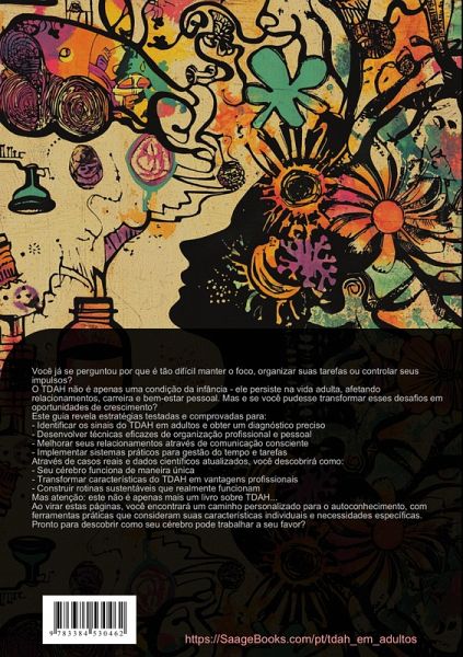Este guia abrangente sobre TDAH na vida adulta oferece uma abordagem estruturada para compreender e gerenciar o transtorno de déficit de atenção e hiperatividade na fase adulta.O livro está organizado em cinco seções principais:1. Diagnóstico e AutoconhecimentoAborda os processos de diagnóstico profissional, incluindo exames médicos e testes psicológicos. Apresenta ferramentas para auto-observação e compreensão dos sintomas, considerando características específicas de gênero e fase da vida.2. Integração ProfissionalFornece orientações práticas para organização do ambiente de trabalho, estratégias de comunicação profissional e otimização do desempenho. Inclui métodos para minimizar distrações e melhorar a gestão de projetos.3. Possibilidades TerapêuticasExplora diferentes abordagens de tratamento, desde medicações até terapias comportamentais. Apresenta informações sobre grupos de medicamentos, planos de administração e gestão de efeitos colaterais, além de técnicas complementarescomo exercícios físicos e relaxamento.4. Gestão do CotidianoOferece estratégias para organização doméstica, desenvolvimento de rotinas e manutenção de relacionamentos saudáveis. Aborda a gestão do tempo livre e equilíbrio entre atividades.5. AutogestãoFoca em métodos de organização pessoal, controle emocional e desenvolvimento individual. Inclui técnicas para planejamento, estabelecimento de prioridades e regulação do humor.Cada capítulo contém gráficos e tabelas ilustrativas, facilitando a compreensão e aplicação prática das informações. O texto apresenta uma linguagem acessível e exemplos concretos do dia a dia.Este livro foi criado com o uso de tecnologias inovadoras, como Inteligência Artificial e ferramentas especialmente desenvolvidas - por exemplo, na geração de ideias, pesquisa, escrita, edição, garantia de qualidade e design de ilustrações decorativas.Desta forma, queremos oferecer-lhe uma experiência de leitura particularmente coerente, moderna e de ainda maior qualidade