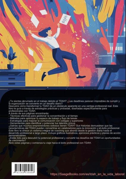 ¿Te has preguntado cómo alcanzar el éxito profesional con TDAH? Este libro ofrece una guía práctica y detallada para adultos que buscan desarrollarse profesionalmente mientras manejan los desafíos del TDAH en la vida laboral.A través de estrategias probadas y herramientas prácticas, esta guía aborda:- Técnicas efectivas para mejorar la concentración y gestionar las distracciones en el entorno laboral- Métodos de organización y gestión del tiempo adaptados a personas con TDAH- Estrategias para optimizar la comunicación con superiores y compañeros de trabajo- Sistemas para estructurar el espacio de trabajo y mantener el orden- Herramientas para el manejo del estrés y la prevención del agotamientoEl libro profundiza en aspectos clave como:- Análisis de fortalezas y desarrollo de competencias profesionales- Planificación de carrera y establecimiento de metas realistas- Técnicas de coaching específicas para TDAH en adultos- Gestión de la productividad y organización personal- Equilibrio entre vida laboral y personalCada capítulo incluye ejercicios prácticos, ejemplos reales y gráficos ilustrativos que facilitan la comprensión y aplicación de las estrategias presentadas. Esta guía está diseñada para ayudarte a:- Identificar y aprovechar tus talentos únicos- Desarrollar sistemas de trabajo efectivos- Construir relaciones profesionales sólidas- Mantener un rendimiento laboral consistenteDescubre cómo transformar los desafíos del TDAH en oportunidades para el crecimiento profesional.Este libro ha sido creado utilizando tecnologías innovadoras como la Inteligencia Artificial y herramientas especialmente desarrolladas, por ejemplo, en la búsqueda de ideas, la investigación, la escritura, la edición, el control de calidad y el diseño de ilustraciones decorativas.De esta manera, queremos ofrecerle una experiencia de lectura especialmente coherente, moderna y de mayor calidad.