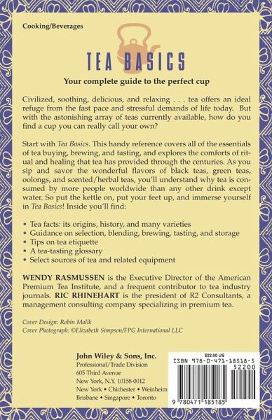 TEA BASICS Your complete guide to the perfect cup Civilized, soothing, delicious, and relaxing . . . tea offers an ideal refuge from the fast pace and stressful demands of life today. But with the astonishing array of teas currently available, how do you find a cup you can really call your own? Start with Tea Basics. This handy reference covers all of the essentials of tea buying, brewing, and tasting, and explores the comforts of ritual and healing that tea has provided through the centuries. As you sip and savor the wonderful flavors of black teas, green teas, oolongs, and scented/herbal teas, you'll understand why tea is consumed by more people worldwide than any other drink except water. So put the kettle on, put your feet up, and immerse yourself in Tea Basics! Inside you'll find: * Tea facts: its origins, history, and many varieties * Guidance on selection, blending, brewing, tasting, and storage * Tips on tea etiquette * A tea-tasting glossary * Select sources of tea and related equipment