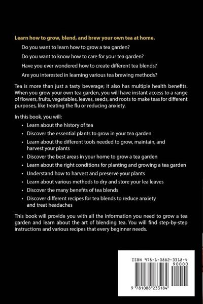 Due to its numerous benefits, tea drinking has an extensive history and cultural background. Ever since it became a daily habit in the 3rd century CE, tea consumption led to the spread of tea gardening. Historical evidence shows that the plant used for tea was grown for medicinal purposes long before tea cultivation laid the foundation for use in modern medicine. The traditional methods of preparing healing drinks from these plants have survived largely unaltered - and for a good reason. As you'll learn from this guidebook, cultivating herbs for tea is one of the most straightforward ways to acquire some good gardening skills. However, before you begin planting your garden, you'll need to familiarize yourself with the basics of tea farming. This book has a chapter dedicated to all the tools you need for planting, growing, harvesting, and preparing tea - and another one that enlists the herbs you can grow in your tea garden. A massive advantage of tea gardening is that you can cultivate the necessary herbs anywhere - from rooftops to gardens to balconies and windows. There are plenty of tips on creating specific growing conditions needed in each location, depending on your agro-climatic conditions.