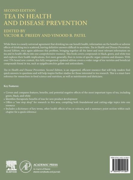 While there is a nearly universal agreement that drinking tea can benefit health, information on the benefits or adverse effects of drinking tea is scattered, leaving definitive answers difficult to ascertain. Tea in Health and Disease Prevention, Second Edition, once again addresses this problem, bringing together all the latest and most relevant information on tea and its health effects into one comprehensive resource. This book covers compounds in black, green, and white teas and explores their health implications, first more generally, then in terms of specific organ systems and diseases.…mehr