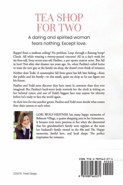 A daring and spirited woman fears nothing. Except love. Rappel from a stadium ceiling? No problem. Leap through a flaming hoop? Check. Get 20,000 fans cheering on their feet? All in a day's work for Pauline, a beloved pro sports mascot actor. But fall in love? Not after that disaster ten years ago. So, when her mother calls her home for a week to train the new guy at the family tea shop, Pauline doesn't even think of romance. Neither does Todd. He loves one thing: ballet. Now a catastrophic fall from grace has left one of the world's greatest ballet dancers hiding-from the public and his family-in this small, quiet tea shop while he figures out his future. Pauline and Todd soon discover they have more in common than they ever imagined. But Pauline's hard-worn body reminds her that the clock is ticking on her 30-year career, and one of Todd's biggest fans may expose his identity before he's ready to face his own truth. What comes first: their careers or each other? Tea Shop for Two is an uplifting and inspiring romance that'll introduce you to new friends in the quaint shopping district of Belmont Village. If you like feel-good stories about tea shops, trust, and taking a chance on love, then cozy up with a cup of tea and this heartwarming sweet romance by Lori Wolf-Heffner. The books in Love on Belmont can be read in order or on their own.