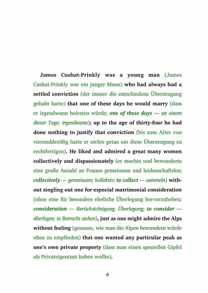 Entdecken Sie die Welt der Fremdsprachen auf eine ganz neue Weise mit der Lesemethode von Ilya Frank, perfekt für alle ab dem Sprachniveau A2. Diese innovative Methode kombiniert Originaltexte mit klaren, direkten Übersetzungen und bietet zusätzliche Erläuterungen direkt im Lesefluss, um ein tiefes Verständnis und schnelles Lernen zu fördern. Ob Sie Ihre Sprachkenntnisse verbessern oder in eine neue Sprache eintauchen möchten, diese Methode bietet ein einzigartiges und effektives Leseerlebnis. Dank der integrierten Hörbücher wird auch das Hörverständnis trainiert. Lesemethode von Ilya Frank ist ideal für alle, die ihre Sprachkenntnisse effektiv erweitern wollen, ohne den natürlichen Lesefluss zu unterbrechen. Tauchen Sie ein in die raffinierte und unterhaltsame Welt von "Tea" von Saki, einer Kurzgeschichte, die Sakis scharfsinnigen Humor und seine meisterhafte Erzählkunst perfekt zur Geltung bringt. In "Tea" entführt Saki Sie in die Salons der britischen Oberschicht, wo eine einfache Teeparty schnell zu einer Bühne für Intrigen und witzige Missverständnisse wird. Die Geschichte dreht sich um James Cushat-Prinkly und seine versuchten Annäherungen an die junge und schöne Joan Sebastable. Was als harmlose Teestunde beginnt, entwickelt sich bald zu einer amüsanten und pointierten Darstellung gesellschaftlicher Spielchen und menschlicher Schwächen. Sakis brillante Beobachtungsgabe und sein geschickter Einsatz von Ironie machen "Tea" zu einem wahren Genuss. Mit feiner Satire und scharfsinnigem Witz zeichnet Saki ein lebendiges Bild der damaligen Gesellschaft und ihrer Rituale. Die unerwarteten Wendungen und die prägnante Charakterzeichnung sorgen für ein kurzweiliges und dennoch tiefgründiges Leseerlebnis. Perfekt für Liebhaber intelligenter und humorvoller Literatur, wird "Tea" Sie nicht nur zum Lachen bringen, sondern auch zum Nachdenken anregen. Erleben Sie Sakis einzigartige Erzählkunst und genießen Sie eine Geschichte, die sowohl amüsant als auch tiefsinnig ist. Ideal für alle, die den feinen britischen Humor und die subtile Satire Sakis zu schätzen wissen. Ungekürzter Originaltext. Zweisprachiges Buch Englisch-Deutsch mit Audio-Online. Innovative Lesemethode von Ilya Frank: https://easyoriginal.com/lesemethode/ Leseprobe: https://easyoriginal.com/leseproben/DE69.pdf