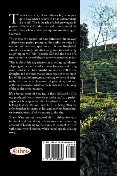This is a true story of an ordinary boy who grew up to have what I believe to be an extraordinary tale to tell. This is the tale of a lad growing up in post-war Britain and of the trials and tribulations of life in a boarding school and an attempt to earn his wings at Cranwell. This is also the account of how letters sent home over a fifteen-year period prompted the author to write his memoirs of these years spent in what is now Bangladesh and of the exciting, but often dangerous times of being caught up in the Indo-Pakistan War and the birth of a new nation—a slice of history barely remembered today. This is about his experiences as a young tea planter adapting to the vagaries of a strange language and living conditions in a Third World country as well as the droughts and cyclones that at times resulted in so much loss of life and infrastructure, learning to live and adapt to the harsh and often bone-wearying humidity and heat of the monsoons but relishing the beauty and the blessing of the cooler winter months. It’s a factual story of how tea in the 1960s and 1970s was produced from—‘two leaves and a bud’ to a perfect cup of tea, how sport and club life played a major part in helping to dispel the loneliness he felt at being often the only Britisher for many miles, and how his friendships were made, many of which endure to this day. Simon Watt sets out the tale of his first thirty-five years in a frank and candid way. It is an honest, often moving account of his life up to that time. It is a book written with sincerity and humour while revealing a fascinating story.