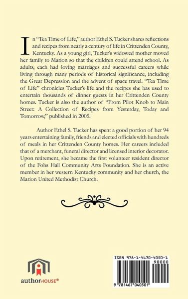 In the "Tea Time of Life," author Ethel S. Tucker shares reflections and recipes from nearly a century of life in Crittenden County, Kentucky. As a young girl, Tucker's widowed mother moved her family to Marion so that the children could attend school. As adults, each had loving marriages and successful careers while living through many periods of historical significance, including the Great Depression and the advent of space travel. "Tea Time of Life" chronicles Tucker's life and the recipes she has used to entertain thousands of dinner guests in her Crittenden County homes. Tucker is also…mehr