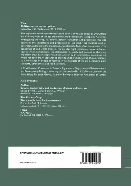 Tea is a unique crop and, incidentally, a very interesting and attractive one. The tea bush, its cultivation and harvesting do not fit into any typical cropping pattern. Moreover, its processing and marketing are specific to tea. Thus the Tea Industry stands apart and constitutes a self contained entity. This is reflected in the title given to this book, Tea: Cultivation to consumption, and its treatment of the subject. The book is logically planned - starting with the plant itself and finishing with the traditional'cuppa'. Every aspect of tea production is covered, inevitably some in greater detail than others. However, it gives an authentic and comprehensive picture of the tea industry. The text deals in detail with cultural practices and research, where desirable, on a regional basis. The technology of tea cultivation and processing has been developed within the industry, aided by applied research which was largely financed by the tea companies themselves. This contributed to a technically competent industry but tended to bypass the more academic and fundamental investigations which might bring future rewards. The sponsorship of research has now widened and the range and depth of tea research has increased accordingly. The editors and authors of this book have played their part in these recent developments which are well reported in the book.