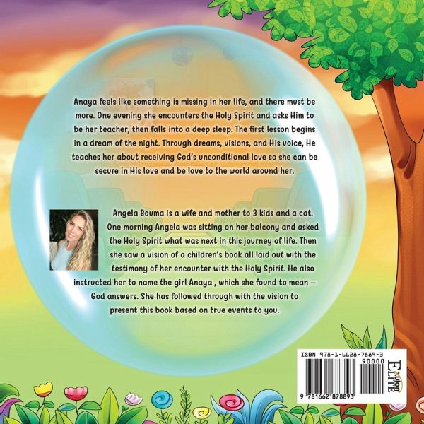 Anaya feels like something is missing in her life, and there must be more. One evening she encounters the Holy Spirit and asks Him to be her teacher, then falls into a deep sleep. The first lesson begins in a dream of the night. Through dreams, visions, and His voice, He teaches her about receiving God's unconditional love so she can be secure in His love and be love to the world around her. Angela Bouma is a wife and mother to 3 kids and a cat. One morning Angela was sitting on her balcony and asked the Holy Spirit what was next in this journey of life. Then she saw a vision of a children's book all laid out with the testimony of her encounter with the Holy Spirit. He also instructed her to name the girl Anaya, which she found to mean - God answers. She has followed through with the vision to present this book based on true events to you.