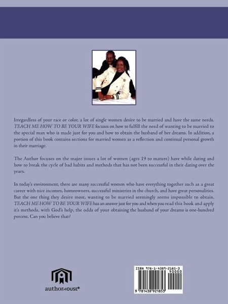 What are the odds of you getting the husband of your dreams? The answer is with God's help, it can dramatically increase! Teach Me How To Be Your Wife is geared towards single women, teaching beyond the basic principles of dating, without lowering your standards to obtain the husband of your dreams. In addition, you will learn how to fulfill the need of wanting to be married and how to break the cycle of bad habits and methods that has not been successful in the past. We are living in a very aggressive, competitive environment and unfortunately, our women have become cut-throat towards one another with no inner values, and eagerly chase men instead of the men chasing them. How a man treats you, depends solely on you. Are you willing to try something different?