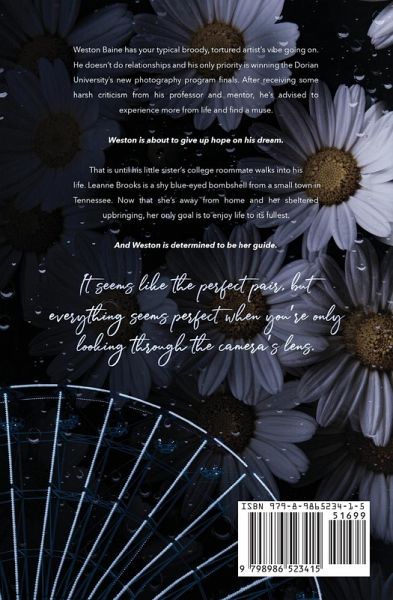 Weston Baine has your typical broody, tortured artist's vibe going on. He doesn't do relationships and his only priority is winning the Dorian University's new photography program finals. After receiving some harsh criticism from his professor and mentor, he's advised to experience more from life and find a muse. Weston is about to give up hope on his dream. That is until his little sister's college roommate walks into his life. Leanne Brooks is a shy blue-eyed bombshell from a small town in Tennessee. Now that she's away from home and her sheltered upbringing, her only goal is to enjoy life to its fullest. And Weston is determined to be her guide. It seems like the perfect pair, but everything seems perfect when you're only looking through the camera's lens.