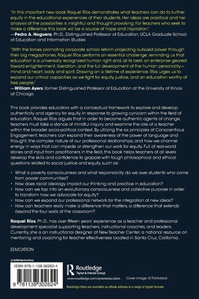 This book provides educators with a conceptual framework to explore and develop authenticity and agency for equity. In response to growing cynicism within the field of education, Raquel Ríos argues that in order to become authentic agents of change, teachers must take a stance of mindful inquiry and examine the role of a teacher within the broader socio-political context. By utilizing the six principles of Conscientious Engagement, teachers can expand their awareness of the power of language and thought, the complex nature our professional relationships, and how we channel energy in ways that can impede or strengthen our work for equity. Full of real-world stories and input from practitioners in the field, this book helps teachers of all levels develop the skills and confidence to grapple with tough philosophical and ethical questions related to social justice and equity, such as: What is poverty consciousness and what responsibility do we owe students who come from poorer communities? How does racist ideology impact our thinking and practice in education? How can we tap into an evolutionary consciousness and collective purpose in order to transform how we advocate for equity? How can we expand our professional network for the integration of new ideas? How can teachers really make a difference that matters, a difference that extends beyond the four walls of the classroom?