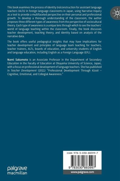 This book examines the process of identity (re)construction for assistant language teachers (ALTs) in foreign language classrooms in Japan, using Narrative Inquiry as a tool to provide a multifaceted perspective on their personal and professional growth. To develop a thorough understanding of the classroom, the author proposes three different types of awareness from the perspective of sociocultural theory. Each type of awareness is a unique lens through which to see the teachers' world of language teaching within the classroom. Finally, the book discusses teacher development, teaching theory, and identity based on analysis of the narrative data.