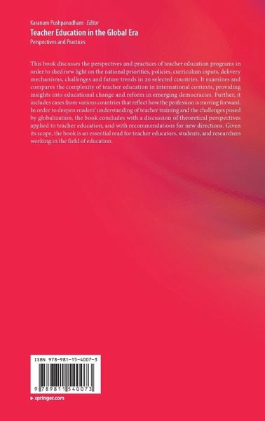 This book discusses the perspectives and practices of teacher education programs in order to shed new light on the national priorities, policies, curriculum inputs, delivery mechanisms, challenges and future trends in 20 selected countries. It examines and compares the complexity of teacher education in international contexts, providing insights into educational change and reform in emerging democracies. Further, it includes cases from various countries that reflect how the profession is moving forward. In order to deepen readers' understanding of teacher training and the challenges posed by globalization, the book concludes with a discussion of theoretical perspectives applied to teacher education, and with recommendations for new directions. Given its scope, the book is an essential read for teacher educators, students, and researchers working in the field of education.
