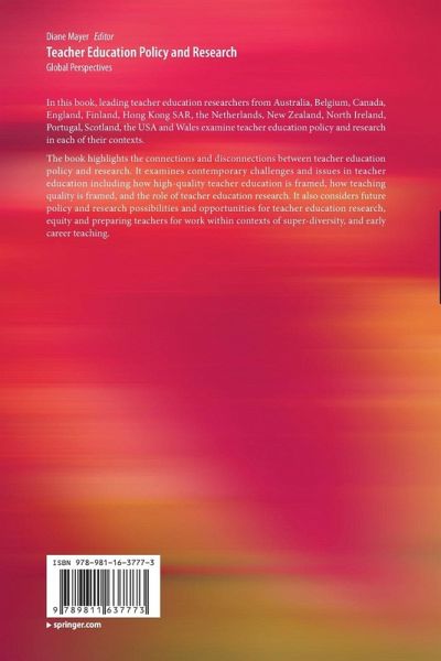 Chapter 1. Teacher Education Policy and Research: An Overview.- Chapter 2. Teacher Education/Ors in Australia: Still Shaping the Profession Despite Policy Intervention.- Chapter 3. A Critical Examination of the Conception of Teacher Professionalism Enacted in Current Teacher Education Policy in Flanders (Belgium).- Chapter 4. Teaching and Teacher Education for a Post-Pandemic Canada: Context, Crisis, Critique and Complication.- Chapter 5. The Complex Policy Landscape of Teacher Education in England: What's the Problem Represented to be?.- Chapter 6. Analyzing Research, Practice and Accountability Turns in Finnish Academic Teacher Education.- Chapter 7. Preparing High Quality Teacher Education Graduates in an Era of Unprecedented Uncertainties: The Case of Hong Kong.- Chapter 8. Quality Under Pressure in Dutch Teacher Education.- Chapter 9. Teacher Education Policy in Aotearoa New Zealand: Global Trends Meet Local Imperatives.- Chapter 10. Teacher Education in Northern Ireland: Policy,Practice and Pragmatism.- Chapter 11. Educating Teachers in the Post-Bologna Context in Portugal: Lessons Learned and Remaining Challenges.- Chapter 12. Measuring Quality in Initial Teacher in the Scottish Context: A Context-Specific Endeavour.- Chapter 13. Teacher Education in The United States Of America: An Overview of the Policies, Pathways, Issues and Relevant Research.- Chapter 14. A Research Informed Approach to Initial Teacher Education in Wales: Intentions, Examples and Reflections.- Chapter 15. Teacher Education Policy: Future Research, Teaching in Contexts of Super-Diversity and Early Career Teaching.