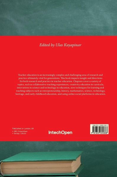 Teacher education is an increasingly complex and challenging area of research and practice ultimately vital for generations. This book imparts insight and directions for both research and practice in teacher education. Chapters cover a variety of topics, such as collaborative teaching experiences, creativity education in curricula, innovations in science and technology in education, new techniques for learning and teaching subjects such as entrepreneurship, history, mathematics, science, technology, heritage, and early childhood education, and using online social platforms in education.