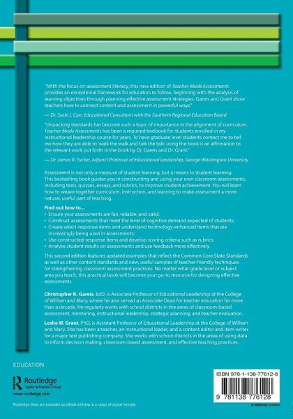 Assessment is not only a measure of student learning, but a means to student learning. This bestselling book guides you in constructing and using your own classroom assessments, including tests, quizzes, essays, and rubrics to improve student achievement. You will learn how to weave together curriculum, instruction, and learning to make assessment a more natural, useful part of teaching. Find out how to... ensure your assessments are fair, reliable, and valid; construct assessments that meet the level of cognitive demand expected of students; create select-response items and understand technology-enhanced items that are increasingly being used on assessments; use constructed-response items and develop scoring criteria such as rubrics; and analyze student results on assessments and use feedback more effectively. This second edition features updated examples that reflect the Common Core State Standards as well as other content standards and new, useful samples of teacher-friendly techniques for strengthening classroom assessment practices. No matter what grade level or subject area you teach, this practical book will become your go-to resource for designing effective assessments. ¿ ¿ ¿ ¿