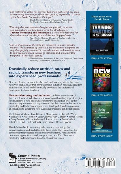 Preface Acknowledgments About the Editor About the Contributors Introduction Part I: Developing and Designing Mentoring and Induction Programs 1. Learning From the Past--Building for the Future - Tom Ganser 2. Developing a District s Mentoring Plan: From Vision to Reality - Mark Bower 3. New Teacher Induction: The Foundation for Comprehensive, Coherent, and Sustained Professional Development - Harry K. Wong 4. Launching the Next Generation of Teachers: The New Teacher Center s Model for Quality Induction and Mentoring - Ellen Moir 5. Embedding Induction and Mentoring Into the School s Culture - Hal Portner 6. The Stages of Mentor Development - Jean Casey and Ann Claunch 7. Mentor Teachers as Instructional Coaches - James Rowley 8. Mentoring: A Matter of Time and Timing - Barry Sweeny 9. Cultivating Learning Focused Relationships Between Mentor Pairs - Bruce Wellman and Laura Lipton Part III: Connecting Mentoring and Induction to Broader Issues 10. Mentoring Promotes Teacher Leadership - Susan Villani 11. Promoting Quality Programs Through State-School Relationships - Janice Hall 12. Applying Ideas From Other Countries - Ted Britton and Lynn Paine Afterword: The Gift That One Generation Gives the Next - Dennis Sparks Index