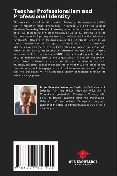 This work was carried out with the aim of finding out the reasons behind the lack of interest in school among pupils in classes 8 to 10 at the Eduardo Mondlane Secondary School in Inhamângua. In the first instance, we looked at various conceptions of teacher training, as we believe that this is key to the development of professionalism and professional identity, which are fundamental elements in preventing pupils' lack of interest in school. We tried to understand the concepts of professionalism and professional identity, as well as the causes and implications of pupils' disaffection with school. In this sense, based on action research, we used a questionnaire addressed to the school manager (DAE), teachers and students. We also used an interview with parents and/or guardians and a lesson observation form. Based on these instruments, we obtained the views of teachers, students, the school manager and parents on what they consider to be the reasons for school disengagement and, inthis sense, we proved that the lack of professionalism and professional identity of teachers contribute to school disengagement.