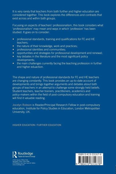 The shape and nature of professional standards for further and higher education teachers are changing constantly. This book provides a current account of developments and debates about both groups in an attempt to challenge strongly held beliefs.