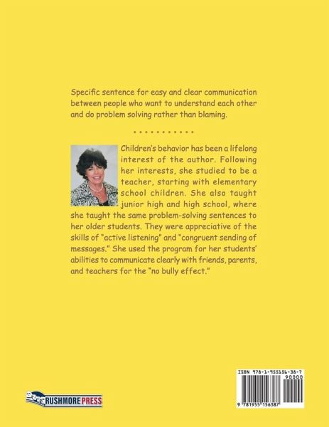 Specific sentence for easy and clear communication between people who want to understand each other and do problem solving rather than blaming. "As a parent, I don't want my child to feel that she is in no position to talk about her feelings. I'm glad this book is helping her out in that department." --Constance J. Lattin, Burbank, California "Communication is best introduced at an early age. There should be more books like this that promote the importance of this life skill." --Lanita T. Taylor, Bronx, New York "Everyone, even little children, has the right to be heard. I'm thankful that the book emphasizes this." --Marie B. Vallejo, Garden City, New York "Author seems to have a good knowledge of child behavior. A timely topic and much needed book." --Valerie Porter
