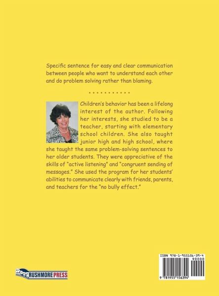 Specific sentence for easy and clear communication between people who want to understand each other and do problem solving rather than blaming. "As a parent, I don't want my child to feel that she is in no position to talk about her feelings. I'm glad this book is helping her out in that department." --Constance J. Lattin, Burbank, California "Communication is best introduced at an early age. There should be more books like this that promote the importance of this life skill." --Lanita T. Taylor, Bronx, New York "Everyone, even little children, has the right to be heard. I'm thankful that the…mehr