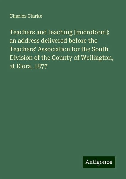 Teachers and teaching [microform]: an address delivered before the Teachers' Association for the South Division of the County of Wellington, at Elora, 1877 - Clarke, Charles