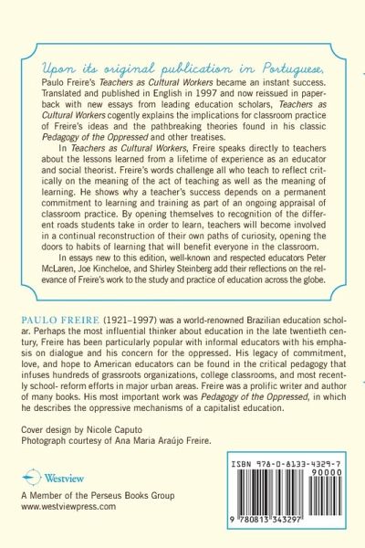 In Teachers as Cultural Workers, Freire speaks directly to teachers about the lessons learned from a lifetime of experience as an educator and social theorist. Freire's words challenge all who teach to reflect critically on the meaning of the act of teaching as well as the meaning of learning. He shows why a teacher's success depends on a permanent commitment to learning and training, as part of an ongoing appraisal of classroom practice. By opening themselves to recognition of the different roads students take in order to learn, teachers will become involved in a continual reconstruction of their own paths of curiosity, opening the doors to habits of learning that will benefit everyone in the classroom. In essays new to this edition, well-known and respected educators Peter McLaren, Joe Kincheloe, and Shirley Steinberg add their reflections on the relevance of Freire's work to the study and practice of education across the globe.