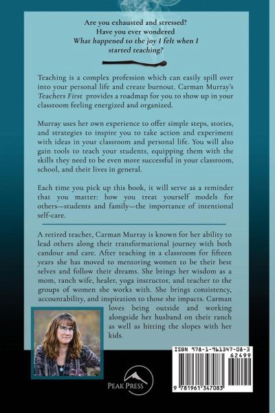 Are you exhausted and stressed? Have you ever wondered What happened to the joy I felt when I started teaching? Teaching is a complex profession which can easily spill over into your personal life and create burnout. Carman Murray's Teachers First provides a roadmap for you to show up in your classroom feeling energized and organized. Murray uses her own experience to offer simple steps, stories, and strategies to inspire you to take action and experiment with ideas in your classroom and personal life. You will also gain tools to teach your students, equipping them with the skills they need to be even more successful in your classroom, school, and their lives in general. Each time you pick up this book, it will serve as a reminder that you matter: how you treat yourself models for others-students and family-the importance of intentional self-care.