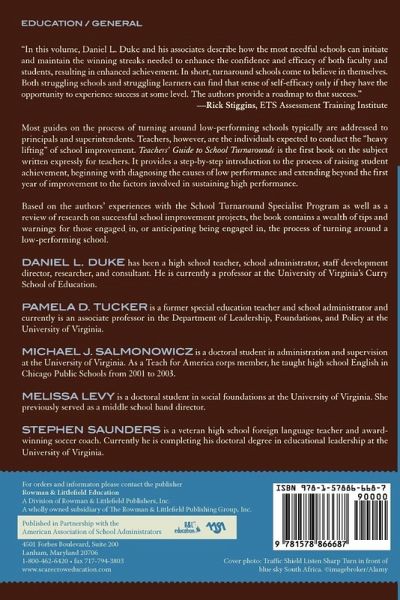 Most guides on the process of turning around low-performing schools typically are addressed to principals and superintendents. Teachers, however, are the individuals expected to conduct the 'heavy lifting' of school improvement. Teachers' Guide to School Turnarounds is the first book on the subject written expressly for teachers. It provides a step-by-step introduction to the process of raising student achievement, beginning with diagnosing the causes of low performance and extending beyond the first year of improvement to the factors involved in sustaining high performance. Based on the authors' experiences with the School Turnaround Specialist Program as well as a review of research on successful school improvement projects, the book contains a wealth of tips and warnings for those engaged in, or anticipating being engaged in, the process of turning around a low-performing school.