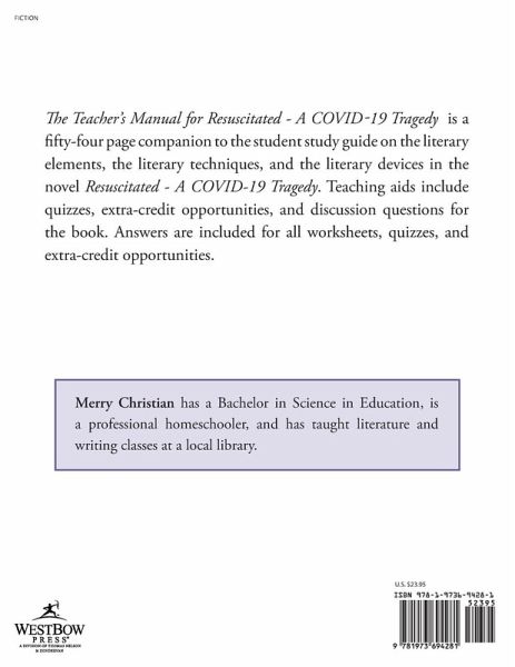 The Teacher's Manual for Resuscitated - A COVID-19 Tragedy is a fifty-four page companion to the student study guide on the literary elements, the literary techniques, and the literary devices in the novel Resuscitated - A Covid-19 Tragedy. Teaching aids include quizzes, extra-credit opportunities, and discussion questions for the book. Answers are included for all worksheets, quizzes, and extra-credit opportunities.