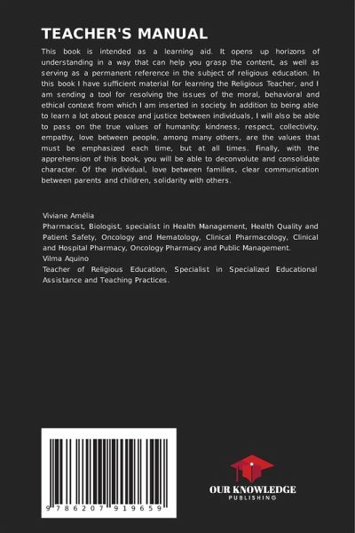 This book is intended as a learning aid. It opens up horizons of understanding in a way that can help you grasp the content, as well as serving as a permanent reference in the subject of religious education. In this book I have sufficient material for learning the Religious Teacher, and I am sending a tool for resolving the issues of the moral, behavioral and ethical context from which I am inserted in society. In addition to being able to learn a lot about peace and justice between individuals, I will also be able to pass on the true values of humanity: kindness, respect, collectivity, empathy, love between people, among many others, are the values that must be emphasized each time, but at all times. Finally, with the apprehension of this book, you will be able to deconvolute and consolidate character. Of the individual, love between families, clear communication between parents and children, solidarity with others.