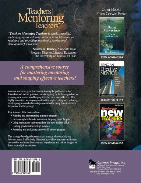 Dedication Acknowledgments About the Author 1. Mentoring: A Welcome Teaching Assistant 2. Initial Program Development 3. What Is Our Purpose? 4. Who Is a Mentor? 5. Preparing People to Serve as Mentors 6. Matching Mentors and Proteges 7. What Do Mentors Do? 8. Mentoring for Beginning Teachers 9. Mentoring for Veterans 10. Did the Mentoring Program Work? 11. Moving Beyond Starting Your Mentoring Program Resource A: Mentoring Quiz Answers Resource B: Action Panning Form Suggested Readings Index