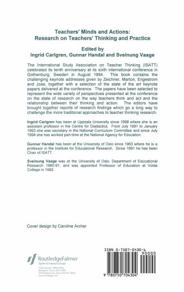 Based on the 10th International Study Association on Teacher Thinking and Practice Conference in Gothenburg, this text contains a collection of original research conducted by scholars from Europe, North America, Israel and Hong Kong, and provides an overview of the current status of international research on teacher thinking.; The contributors write from different perspectives - some analytical, some philosophical and some contextual - on the way teachers think and act. The intention of the book is not to characterise critically the established traditions or any of its researchers, but to study teacher-thinking research in context, analysing research objectives and enquiring into what lies behind the traditions. The result is a picture of an unpredictable but exciting and interesting future in developments in teacher-thinking research.