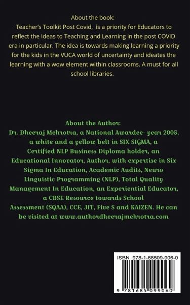 Teacher’s Toolkit Post Covid, is a priority for Educators to reflect the Ideas to Teaching and Learning in the post COVID era in particular. The idea is towards making learning a priority for the kids in the VUCA world of uncertainty and ideates the learning with a wow element within classrooms. A must for all school libraries.