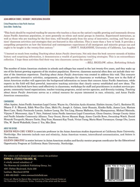 This book should be required reading for anyone who teaches a class on the nation's rapidly growing and immensely diverse Asian Pacific American population, or more generally on ethnic and racial groups in America. Experienced instructors, as well as those who are teaching for the first time, will benefit greatly from the array of innovative, exciting, and 'best practices' classroom activities and strategies that are featured in this collection. This is more than a 'how to' book. It provides a compelling perspective on how the historical and contemporary experiences of all immigrant and minority groups can and ought to be taught in the twenty-first century. -- Don T. Nakanishi, University of California, Los Angeles I learned so much from reading Teaching about Asian Pacific Americans. Not only does the book uncover mounds of hidden history and surprising information, it demonstrates a wealth of participatory teaching strategies. This is an extraordinary collection. I hope these activities find their way into classrooms across the country. -- Bill Bigelow, editor, Rethinking Schools This collection is interdisciplinary in scope, encompassing a variety of social science disciplines including sociology as well as humanitites and professional education. Teaching Sociology