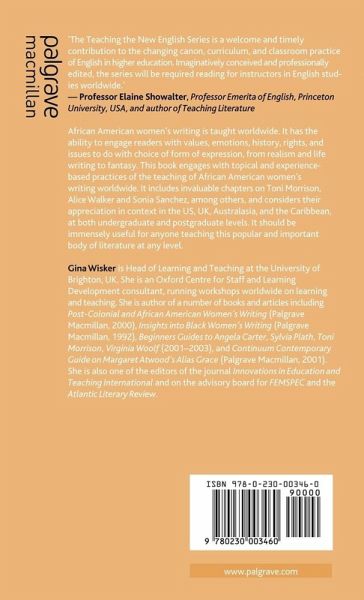 Acknowledgements Notes on the Contributors Introduction to Teaching African American Women's Writing; G.Wisker Teaching The Color Purple ; G.Wisker Tune in and Turn On: Learning to Listen in Zora Neale Hurston's Their Eyes Were Watching God ; V.Bazin Teaching Trauma: (Neo-)Slave Narratives and Cultural (Re-)Memory; D.L.Madsen Teaching Four African-American Female Poets in Context: Lucy Terry, Phillis Wheatley, Frances E. W. Harper, and Sonia Sanchez; F.E.De Lancey 'This Crisis in the History of the Negro': Contending Forces at the Nexus of Debate; J.S.Sanders (En)lightening the Dark Vision: Redemption through Storytelling in Toni Morrison's Beloved; L.J.Holland-Toll & A.R.Mullis When the Rainbow is Not Enough: Using African American Literature to Demystify Race in a Caribbean Tertiary Environment; P.Morgan Teaching African American Women's Literature in Australia: Reading Toni Morrison in the Deep North; C.Ferrier Postgraduate Students Working on African American Women's Writing: Supervision and the Research Journey; M.Treby & G.Wisker Chronology of Key Publications and Events Selective Guide to Further Reading, Books, Journal Articles and Web Resources List of Key Authors and Critics Index
