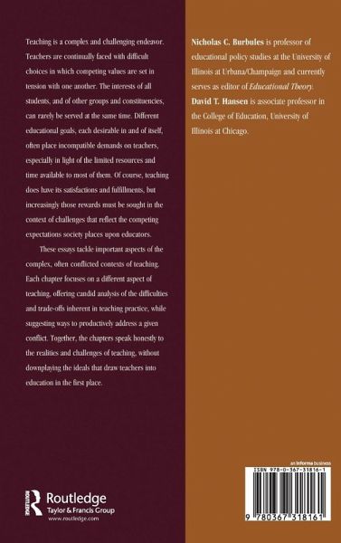 Nicholas C. Burbules is professor of educational policy studies at the University of Illinois at Urbana/Champaign and currently serves as editor of Educational Theory. David T. Hansen is associate professor in the College of Education, University of Illinois at Chicago.