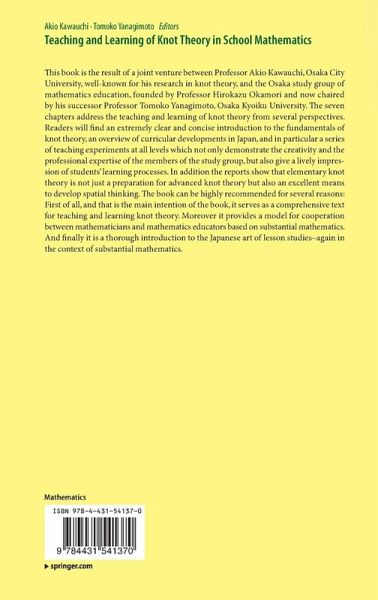 This book is the result of a joint venture between Professor Akio Kawauchi, Osaka City University, well-known for his research in knot theory, and the Osaka study group of mathematics education, founded by Professor Hirokazu Okamori and now chaired by his successor Professor Tomoko Yanagimoto, Osaka Kyoiku University. The seven chapters address the teaching and learning of knot theory from several perspectives. Readers will find an extremely clear and concise introduction to the fundamentals of knot theory, an overview of curricular developments in Japan, and in particular a series of teaching experiments at all levels which not only demonstrate the creativity and the professional expertise of the members of the study group, but also give a lively impression of students' learning processes. In addition the reports show that elementary knot theory is not just a preparation for advanced knot theory but also an excellent means to develop spatial thinking. The book can be highly recommended for several reasons: First of all, and that is the main intention of the book, it serves as a comprehensive text for teaching and learning knot theory. Moreover it provides a model for cooperation between mathematicians and mathematics educators based on substantial mathematics. And finally it is a thorough introduction to the Japanese art of lesson studies-again in the context of substantial mathematics.