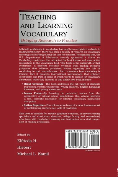 This book presents scientific evidence from leading research programs that address persistent issues regarding the role of vocabulary in text comprehension. Part I examines how vocabulary is learned; Part II presents instructional interventions that