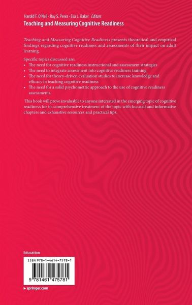 Teaching and Measuring Cognitive Readiness deals with (a) the primacy of cognitive readiness as attributes or individual difference variables; (b) the need for cognitive readiness instructional and assessment strategies; (c) the need to integrate assessment into cognitive readiness training; (d) the need for theory-driven evaluation studies to increase knowledge and efficacy in teaching cognitive readiness; and (e) the need for a solid psychometric approach to the use of cognitive readiness assessments.