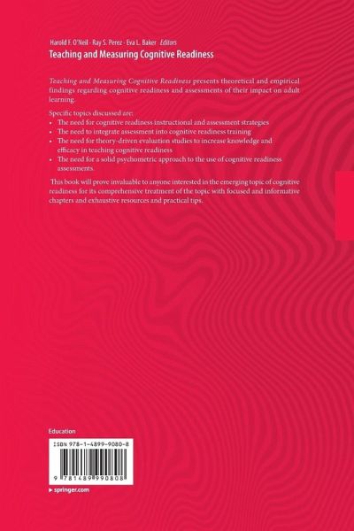 Teaching and Measuring Cognitive Readiness deals with (a) the primacy of cognitive readiness as attributes or individual difference variables; (b) the need for cognitive readiness instructional and assessment strategies; (c) the need to integrate assessment into cognitive readiness training; (d) the need for theory-driven evaluation studies to increase knowledge and efficacy in teaching cognitive readiness; and (e) the need for a solid psychometric approach to the use of cognitive readiness assessments.