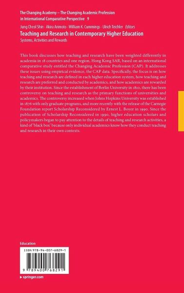 This book discusses how teaching and research have been weighted differently in academia in 18 countries and one region, Hong Kong SAR, based on an international comparative study entitled the Changing Academic Profession (CAP). It addresses these issues using empirical evidence, the CAP data. Specifically, the focus is on how teaching and research are defined in each higher education system, how teaching and research are preferred and conducted by academics, and how academics are rewarded by their institution. Since the establishment of Berlin University in 1810, there has been controversy on teaching and research as the primary functions of universities and academics. The controversy increased when Johns Hopkins University was established in 1876 with only graduate programs, and more recently with the release of the Carnegie Foundation report Scholarship Reconsidered by Ernest L. Boyer in 1990. Since the publication of Scholarship Reconsidered in 1990, higher education scholars and policymakers began to pay attention to the details of teaching and research activities, a kind of 'black box' because only individual academics know how they conduct teaching and research in their own contexts.