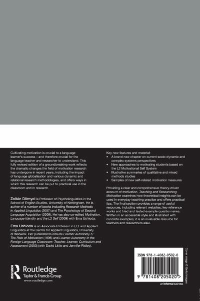 Cultivating motivation is crucial to a language learner's success - and therefore crucial for the language teacher and researcher to understand. This fully revised edition of a groundbreaking work reflects the dramatic changes the field of motivation research has undergone in recent years, including the impact of language globalisation and various dynamic and relational research methodologies, and offers ways in which this research can be put to practical use in the classroom and in research. Key new features and material: A brand new chapter on current socio-dynamic and complex systems perspectives New approaches to motivating students based on the L2 Motivational Self System Illustrative summaries of qualitative and mixed methods studies Samples of new self-related motivation measures Providing a clear and comprehensive theory-driven account of motivation, Teaching and Researching Motivation examines how theoretical insights can be used in everyday teaching practice, and offers practical tips. The final section provides a range of useful resources, including relevant websites, key reference works and tried and tested example questionnaires. Written in an accessible style and illustrated with concrete examples, it is an invaluable resource for teachers and researchers alike.