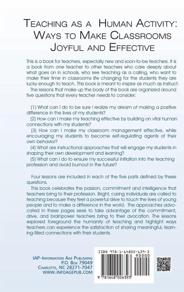 This is a book for teachers, especially new and soon-to-be teachers. It's a book from one teacher to other teachers who care deeply about what goes on in schools, who see teaching as a calling, who want to make their time in classrooms life changing for the students they are lucky enough to teach. This book is meant to inspire as much as instruct. The lessons that make up the body of this book are organized around five questions that every teacher needs to consider: (1) What can I do to be sure I realize my dream of making a positive difference in the lives of my students? (2) How can I make my teaching effective by building on vital human connections with my students? (3) How can I make my classroom management effective, while encouraging my students to become self-regulating agents of their own behavior? (4) What are instructional approaches that will engage my students in shaping their own development and learning? (5) What can I do to ensure my successful initiation into the teaching profession and avoid burnout in the future? Four lessons are included in each of the five parts defined by these questions. This book celebrates the passion, commitment and intelligence that teachers bring to their profession. Bright, caring individuals are called to teaching because they feel a powerful drive to touch the lives of young people and to make a difference in the world. The approaches advocated in these pages seek to take advantage of the commitment, drive, and brainpower teachers bring to their avocation. The lessons explored foreground the humanity of teaching and highlight ways teachers can experience the satisfaction of sharing meaningful, learning-filled connections with their students.