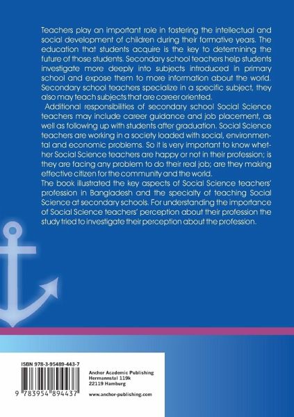 Teachers play an important role in fostering the intellectual and social development of children during their formative years. The education that students acquire is the key to determining the future of those students. Secondary school teachers help students investigate more deeply into subjects introduced in primary school and expose them to more information about the world. Secondary school teachers specialize in a specific subject, they also may teach subjects that are career oriented. Additional responsibilities of secondary school Social Science teachers may include career guidance and job placement, as well as following up with students after graduation. Social Science teachers are working in a society loaded with social, environmental and economic problems. So it is very important to know whether Social Science teachers are happy or not in their profession; is they are facing any problem to do their real job; are they making effective citizen for the community and the world. The book illustrated the key aspects of Social Science teachers' profession in Bangladesh and the specialty of teaching Social Science at secondary schools. For understanding the importance of Social Science teachers' perception about their profession the study tried to investigate their perception about the profession.