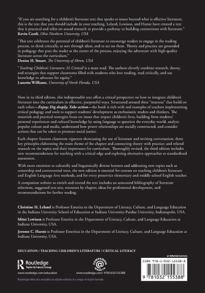 Now in its third edition, this indispensable text offers a critical perspective on how to integrate children's literature into the curriculum in effective, purposeful ways. Structured around three "mantras" that build on each other-Enjoy; Dig deeply; Take action-the book is rich with real examples of teachers implementing critical pedagogy and tools to support students' development as enthusiastic readers and thinkers. The materials and practical strategies focus on issues that impact children's lives, building from students' personal experiences and cultural knowledge by using language to question the everyday world, analyze popular culture and media, understand how power relationships are socially constructed, and consider actions that can be taken to promote social justice.